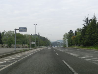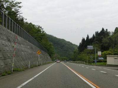 | 喜多町ICを通過して緩やかな右カーブを曲がった先で長岡ICを通過する。長岡ICはこれまで並走していた北陸道ではなく関越道のインターチェンジである。長岡ICの北には北陸道と関越道との長岡JCTがある。長岡ICからの流出路が合流するが、その道路は新潟r86でもある。 関越道の本線の上を通過した直後にR404の上を通っているのだが、交差点やランプでの接続がなく、当然ながら案内標識も設置されていない。R404に進むには約100m西の新潟r48日越交差点を左折してr48を走る必要がある。日越交差点を過ぎるとやや急な勾配を上る。 |