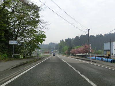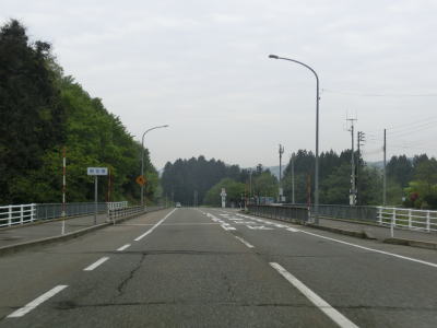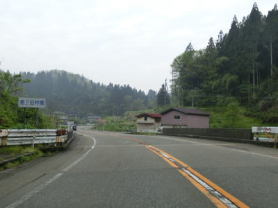 | やや急な左カーブで新潟r393田代交差点を通過した先で黒川に架かる郡界橋を渡る。橋の名称が示す通り、郡の境のため長岡市から刈羽村に入る。この刈羽村は本体ではなく飛び地で、ほとんどが山林だが結構広い面積である。黒川の流域の黒川集落を通り抜けてから程なくして柏崎市に入る。 | ||