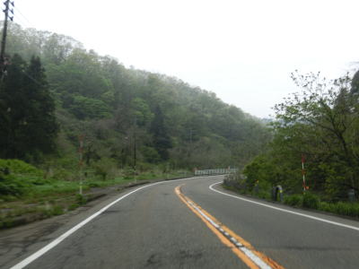| 緩やかなアップダウンとカーブを繰り返す2車線道路を走っていると新潟r433交差点を通過する。源流に近い黒川を何度か渡ると上り勾配が続き、登坂車線が現れる。登坂車線が終わる手前からは刈羽村の本体に入る。曾地峠を越えて下りになってから赤田トンネルに入る。赤田トンネルの旧道は車止めが設置されているため車両での通行はできないが、徒歩や自転車では通行できるようである。 | ||