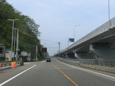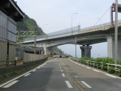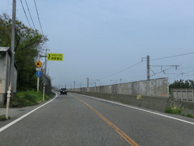 | 姫川大橋を渡って新潟r368姫川大橋交差点を通過すると右にカーブして再び北陸新幹線の高架の下を通過する。新潟r486須沢交差点を通過してから左にカーブして海沿いを走る。内陸側を並走しているr486は軒先険道だがR8は狭いながらも両側に歩道が設置されており走りにくさは全く感じない。 | ||