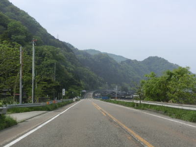 | 青梅駅の北で新潟r155の現道と交差し、そのすぐ先の青海川の手前でr155のバイパスとの港町交差点を通過する。r155は近接するえちごトキめき鉄道を跨線橋で越えるためループで高低差を稼いでいる。青海川橋を渡ると上り勾配となりS字カーブを描きながらえちごトキめき鉄道をオーバーパスする。集落が途切れる場所でもあり青梅から市振にかけては連続雨量140mm超で通行止めとなる。 | ||