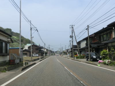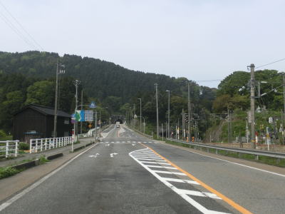 | 市振駅の近くまで来ると勾配がなくなり平坦になって線形も直線基調になる。道の駅「越後市振の関」を通過して玉ノ木集落を通過する。道の駅の名称からも想像できるが、越後、つまり新潟県の西端の集落である。付け加えると市振駅より西の元北陸本線はあいの風とやま鉄道に移管されている。 | ||