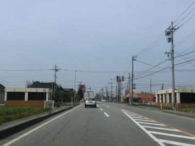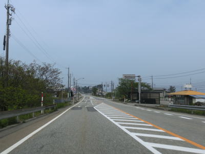 | 入善町に入ってからも平坦な直線基調の2車線道路が続いている。富山r107椚山口交差点や富山r106入善警察署前付近から沿線の商業施設が増える。富山r108高校東交差点と富山r60・r63入善高校西交差点を連続で通過し、入善町役場の前を通過する。沿線の商業施設が少なくなってきてから富山r327上野中交差点を通過する。 | ||