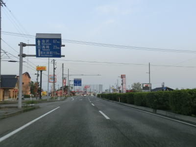 | 片側2快走路の滑川富山バイパス区間を走る。交通量も信号機付きの交差点も多く、幹線国道の雰囲気しか感じられない。富山r61交差点への側道が分岐した直後に富山地方鉄道の上を通過して有金高架橋を渡る。 | ||