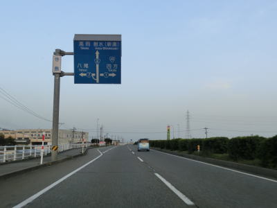 | 片側3車線道路を大きく左にカーブした先でR156四屋交差点に至る。この交差点で左端車線はR156への左折専用車線になってしまうため、交差点の手前から右側車線に誘導する斜め矢印がペイントされている。この四屋交差点はR156の終点であり、R160四屋ICと近接しているが、どちらかがR8に重複しているという事もない。 | ||