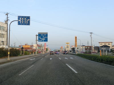 | その後も片側2車線の平坦かつ直線的なバイパスを東の方角に走る。早朝に走っているため交通量が少ないが、昼間であれば交通量が多い区間である。富山r41本郷西交差点を通過してすぐに市境を越えて射水市に入る。 | ||
