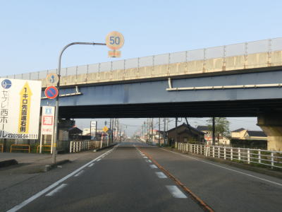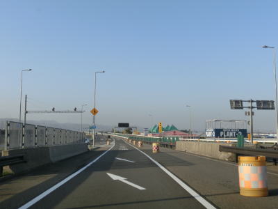 | R159・R249七尾方面の側道が分岐してからは片側1車線となり、程なくしてR159・R249七尾方面からの車線に合流する。R159・R249が合流するのではなく、R8が合流する形状である。合流手前の区間で右側に車線が作れるほどの幅がありながらポリドラムが置かれているのは2車線同士が合流する事の危険性を鑑みての対策だろうか。 R159・R249に合流してすぐに町道に接続している庄出口を通過する。R8から庄出口で流出するには短い距離で2車線分の車線変更をしなければならないので危険と思われる。津幡川を渡った直後に石川r217との中橋ICを通過する。 |