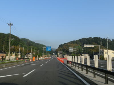 | 西中野交差点を通過してすぐに道の駅「メルヘンおやべ」を通過する。富山r32メルヘンおやべ交差点から出入りできるが、アウトレットパークの出入口でもある西中野交差点からも出入り可能である。メルヘンおやべ交差点を通過すると左側車線が減少する。この改良はアウトレットパークの開業に合わせたものと思われる。車線が減少した直後に富山r74交差点を通過し、以降は上り勾配となる。 | ||