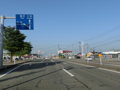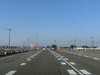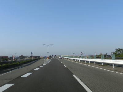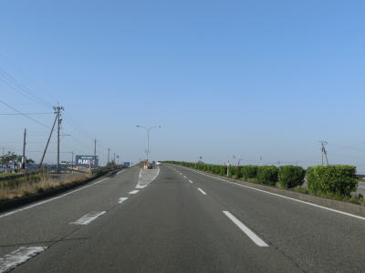 | 末正交差点から少し走ると川北町に入る。その後立体交差化された石川r176橘南交差点を通過してから手取川大橋を渡る。沿線には建物よりも田畑の方が多くなっており、道路状況とは裏腹に風景は長閑である。 | ||