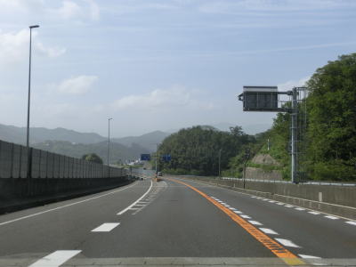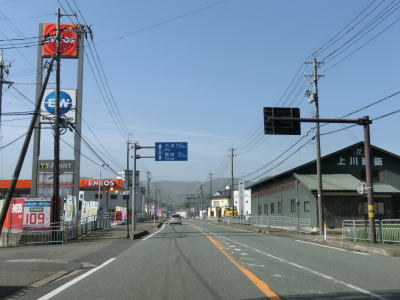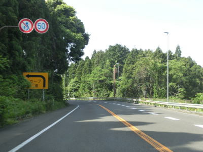 | 登坂車線の終点の左カーブの先に道の駅「河野」がある。一桁幹線国道の周辺に何もない場所にある道の駅だけに昼間は大型トラックが停まっているのをよく見かける。休日はさほど広くない駐車場が満車になっている光景も見られる。道の駅を過ぎてからもカーブの多い断崖路が続いている。海岸線との距離は2〜300m程度だが、標高は200m程度のため海面との高低差は大きい。なお、海岸線ギリギリをR305に指定された元有料道路のしおかぜラインが走っている。 | ||