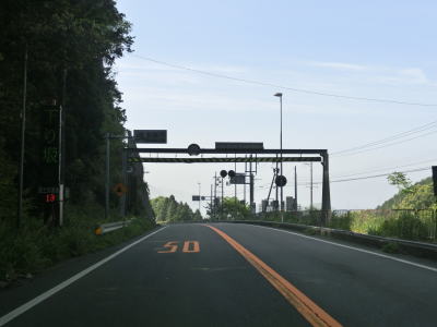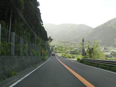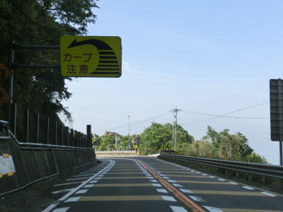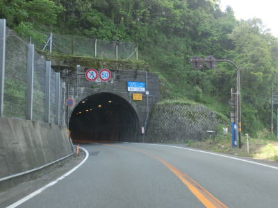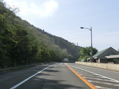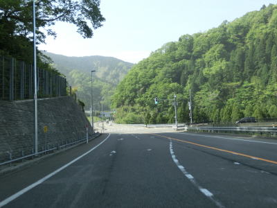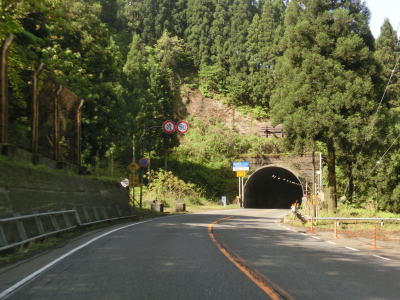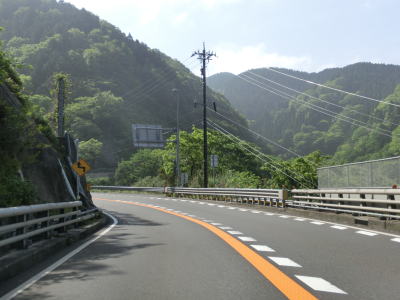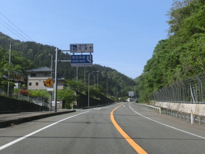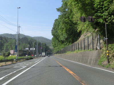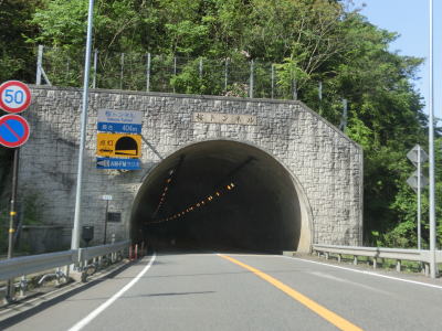 | 具谷集落の西側を通り過ぎると反対側の登坂車線がなくなって普通の対面2車線道路になる。勾配がきつく急カーブが多いが、前に荷物を満載した大型トラックなどがいなければそれなりのペースで走る事ができる。旧道(旧々道?)と思われる道路との交差点(ただし、道路が交差しているようには見えない)を通過してすぐに具谷第1トンネルをくぐり、次いで具谷第2トンネルをくぐる。 | ||