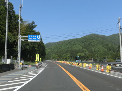| 具谷第2トンネルを出てすぐの左カーブの先で桜トンネルに入る。全長404mとさほど長いトンネルではないが開通は2009年12月6日と比較的新しい。トンネルの手前には旧道との交差点があるが、河野トンネルと桜橋が閉鎖されており通り抜けできない。 桜トンネルを出てすぐにR305桜橋交差点を通過する。交差点の名称の由来となった桜橋は旧道の橋であり前述の通り閉鎖されている。また、桜橋に代わる橋は交差点の南にある新桜橋である。なお、桜トンネルと新桜橋を含むバイパスが開通した際に桜橋交差点の位置も約100m東に移動している。 |