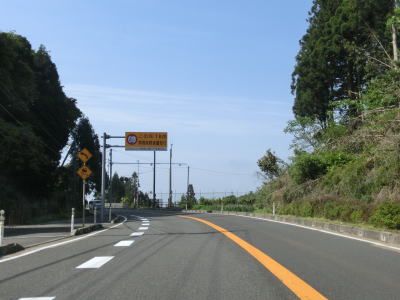 | 春日野交差点からは上りとなるが異常気象時通行規制区間としてはさほど急な勾配ではない。対岸の福井r205と春日野川を挟むような状態を走り、集落が途切れると同時に登坂車線が現れる。起点には終りまでの距離(2.4km)を記した標識がある親切設計である。登坂車線を含めて2+1車線の道路を走っていると反対側車線と分離する。 | ||