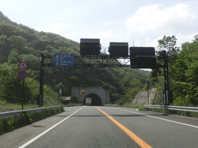 | R27・R161・R162坂ノ下ランプを通過してR27(とR162)からの車線が合流した直後に坂ノ下トンネルをくぐり、次いで小河トンネルをくぐる。敦賀バイパスの坂ノ下ランプ以南の区間の供用開始は2008年と遅く、それまでは岡山町1交差点に交通が集中して渋滞が頻発していた。小河トンネルを出ると緩やかに左にカーブしながら勾配を下り、左側から現道が合流してくる。 | ||