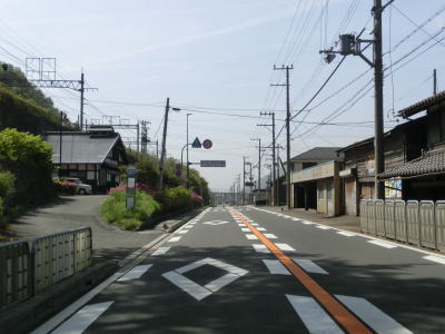 | JR北陸線とともに大川の流域を緩やかに下っていく。一桁国道だが交通量は少なく流れも良好である。近江塩津駅の手前で県境を含む区間の閉鎖用ゲートを通過するが、その辺りから勾配がほとんどなくなる。その後程なくして近江塩津駅の東を通過する。近江塩津駅は北陸本線駅であると同時に湖西線の終点の駅でもある。 | ||