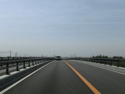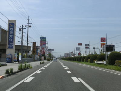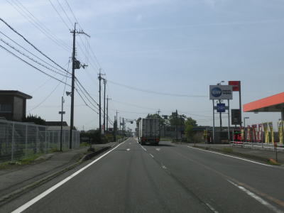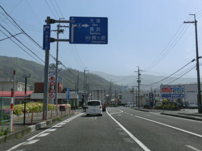 | 千田北交差点で完全に単独区間となるが、道路状況には大した変化はなく対面2車線道路を走る。平坦で直線的なので走りやすいと言いたいところだが、交通量と信号機付きの交差点が多くペースはあまり上がらない。また家屋がほとんど途切れる事なく続いており、商業施設も点在しているのも走りにくさを感じる要因だろう。旧高月町の中心部の南で北陸道の跨道橋下を通過する。 | ||