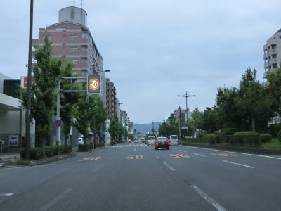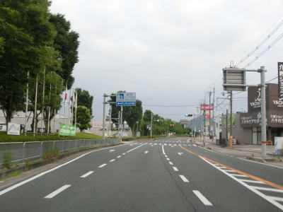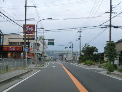 | 土田南交差点を過ぎてからも沿線に商業施設が多い状態が続いている。商業施設が多いだけでなく信号機付きの交差点も多いため、昼間は常時流れが悪いイメージの区間である。千代川駅の真西で京都r409千代川駅前交差点を通過し、右カーブの先で京都r73千原交差点を通過する。r73を西に進めばR478京都縦貫道の千代川ICがある。 | ||