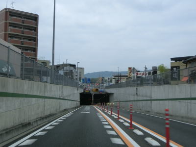 | 千代原口トンネルを出て緩やかな勾配を上り、天皇ノ社古墳前交差点で平面道路と合流する。以降は4車線道路となるが、勾配が若干急になる。勾配が緩やかになった所で京都r142との交差点を通過する。 | ||