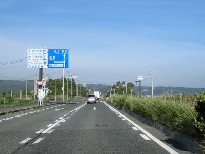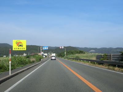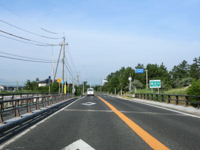 | 青谷交差点を通り過ぎてすぐに勝部川に架かる青谷大橋を渡る。勝部川の左岸を上っていると大きく右にカーブして川から離れて直線的な2車線道路を走る。右にカーブしながら鳥取r247交差点を通過してから明神崎を左にカーブする。 | ||