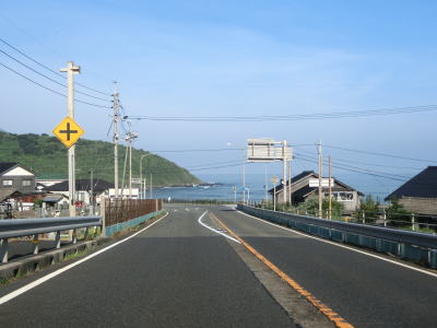 | 水尻トンネルを出ると少し高い位置から海を望む事ができ、左にカーブした先で酒津第一トンネルと酒津第二トンネルを相次いでくぐる。トンネルの間の区間の北に酒津集落があるが、少し高い位置を走っているせいもあって国道から出入できない。 | ||