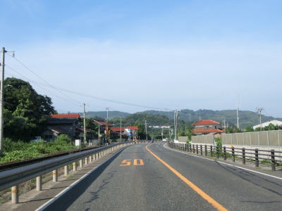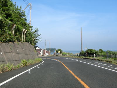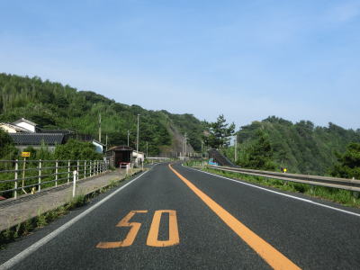 | カーブの多い海沿い区間を走っていると青谷町長和瀬集落を通過して少し走ると市町境を越えて湯梨浜町に入る。湯梨浜町に入ってからは海岸線から少し離れた場所を走っており、緩やかなながら長い勾配を下る。概ね内陸を並走していたJR山陰本線はここでは隣接した状態である。 | ||