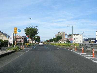 | 渡橋北交差点を過ぎた直後に左側車線が減少して片側2車線道路になる。広い中央分離帯と副道という道路状況が続いており、交通量は多いものの流れは比較的良好である。市道との白枝西交差点を通過するが、そのすぐ南で島根r351が道路下を通っている。ただし、r351は出雲路自転車道線という全長30km程の大規模自転車道である。緩やかな左カーブの先で島根r28・r162神戸橋北方交差点を通過するが、前述の通りr28はR9の旧道に該当する。 | ||