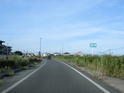 | 緩やかな下り勾配のある2車線道路を走っていると平野部となって水田の中の平坦な2車線道路を快走する。大原橋を渡ってから程なくして島根r286久手港入口交差点を通過する。 | ||