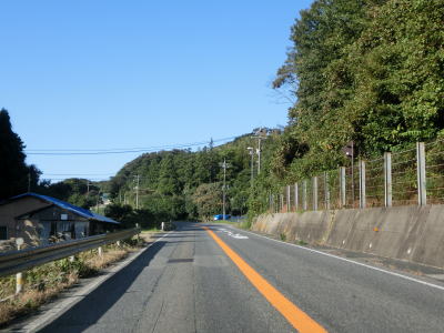 | 周布郵便局前交差点からも2車線道路が続いているが、アップダウンがあり沿線の建物も少なくなる。浜田市の市街地から離れたため交通量も減っている。E9/R9山陰道との西村ICを通過する。 | ||