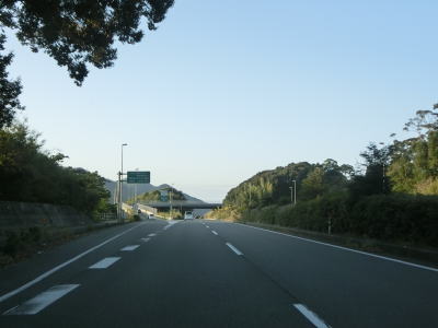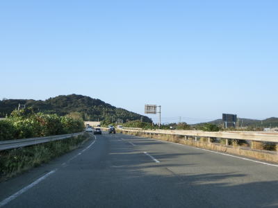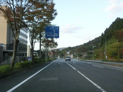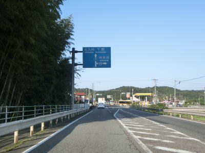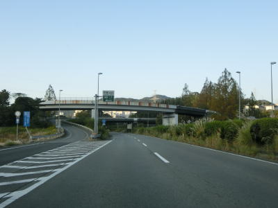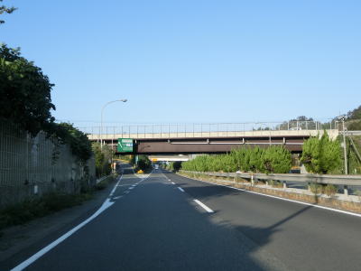 | やや急な勾配を下っていると市道とのランプを通過するが、この市道はR9の旧道である。旧道と合流してからもバイパス然とした片側2車線道路が続いており、交通量も多い。南東側には引き続きJR山口線が並走している。 | ||