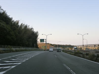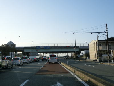| 交通センター前交差点を右折してランプを上って本線に入るが、小郡道路は自転車専用道のため歩行者と自転車はもちろん荷車や125cc以下の車両も進入できない。本線に合流すると高速道路のような片側2車線道路を走る。 | ||
