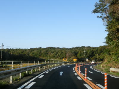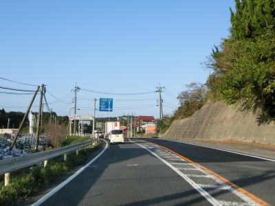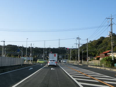 | 登坂車線が終わってから少し上って名もなき峠を越えて宇部市に入る。市境周辺に集落はないが峠の茶屋的な飲食店が建っている。通常の対面2車線道路に戻ってからは緩やかな勾配を下って行く。 | ||