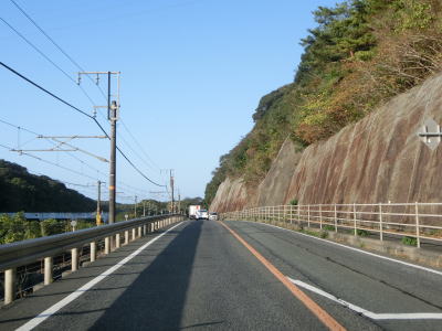 | R2との長い重複区間が終わって単独区間になってからも交通量の多い片側2車線道路が続いている。瀬戸内海に近い場所を通っているが埋立地に工場があるため海は見えない。下関市立美術館と関門医療センターンの間でやや急な右カーブを曲がった先で大雨の時の通行止区間に入る。連続雨量150mmを超えた場合に加えて波浪時も通行止になる。 | ||