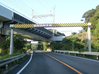 | 左側に山陽新幹線の高架を見ながら西に向かって走るが、高架の下には在来線の山陽本線もある。山陽本線が南の方角にずれた所で山口r215下岡交差点を通過する。r215を走ると宇部市街や山陽小野田市街に行ける事から左折する車両の方が多かった。下岡交差点を過ぎてすぐに山陽新幹線の下をくぐる。前後に制限高バーのようなものが設置されているが、高さは明記されていない。 | ||