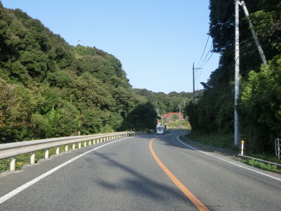 | 急カーブが連続するやや急な勾配を下っていると跨道橋を通過するが、その下には宇部興産の専用道路がある。企業が所有する私道なので一般車両は通行できない。下り勾配が終わる所で山口r30岡の坂交差点を通過して左の急カーブを曲がる。旧楠町の中心部を走っていると山口r29茶屋交差点を通過して舟木大橋を渡る。 | ||