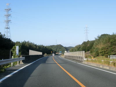 | 舟木大橋を渡った直後は急カーブが連続している。有帆川沿いを少しだけ走った後に山口r349銭ヶ原交差点を通過する。3桁ローカル国道のような雰囲気の2車線道路を走っていると山口r225逢坂交差点を通過する。右折してr225を走ると厚狭市街に行く事ができるが、そのルートからしてR9(実質R2)の旧道と思われる。 | ||