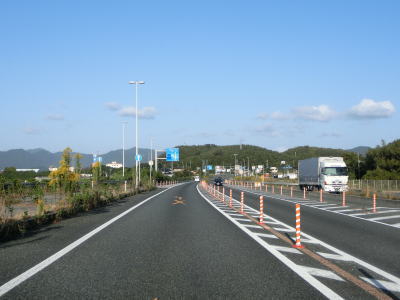 | 825.厚狭川大橋 | 826.信号機付きの交差点がないためハイペースで流れている | 827.車線が増える |