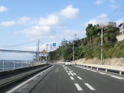| 大雨の時の通行止区間に入ってすぐに沿線の建物が途切れて海岸線沿いを走るようになる。前方に長大橋が見えるが、これは関門海峡を繋ぐE2A関門道の関門橋である。周辺の家屋が多くなった所で山口r246前田交差点を通過する。 | ||