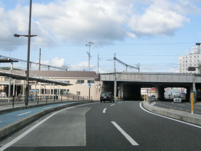 | 下関駅の東口のロータリーに繋がっている山口r323との竹崎交差点を通過する。バス用のロータリーの出入口を過ぎて緩やかな右カーブを曲がるとJR山陽本線・山陰本線のガードをくぐり、その直後にR191・山口r250下関駅西口交差点に至る。この交差点がR2の終点かつR191の起点である。 | ||