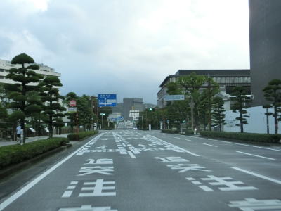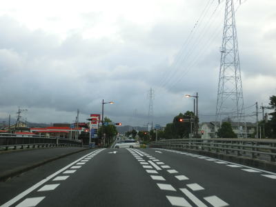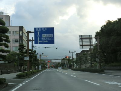| 西郷隆盛像前交差点からは車線幅がさらに広くなる。路面標示は2車線分あるが、走行車線と追越車線の間のラインは引かれていない。城山入口交差点の手前で正式な(?)4車線道路になる。長田中前交差点を過ぎると緩やかな勾配を上り、JR日豊本線の上の長田跨線橋を右にカーブしながら通過する。 | ||