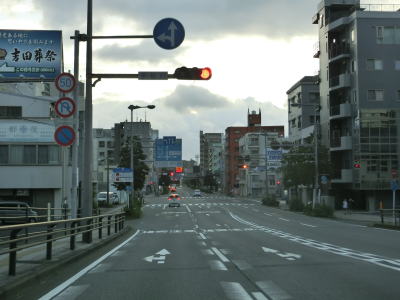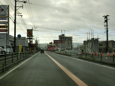 | 国道223入口交差点からも対面2車線道路が続いており、歩道は片側だけであり交通量を考えると走りやすいとは言い難い。新川橋からは両側に歩道が設置されているため走りやすくなるが、沿線に商業施設が多いため昼間は流れが悪くなりやすそうである。鹿児島r60広瀬西交差点までその状況が続く。 | ||
