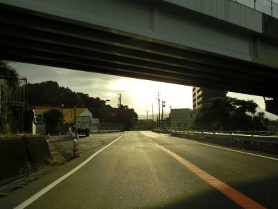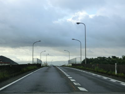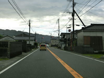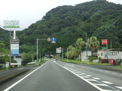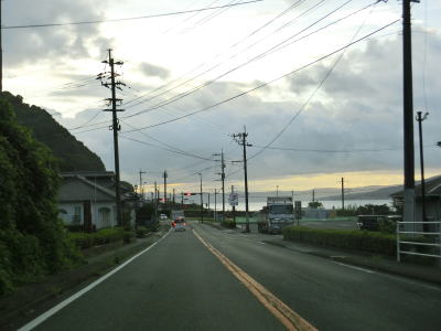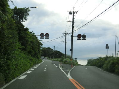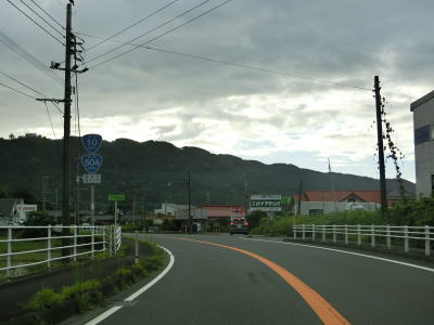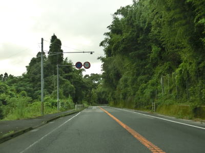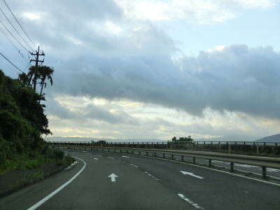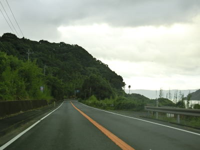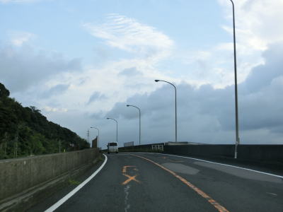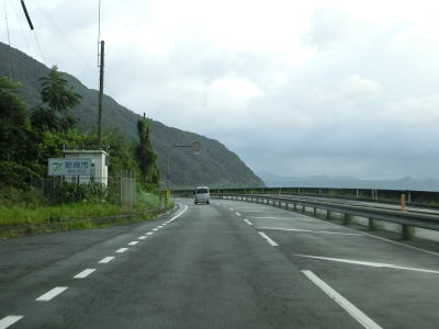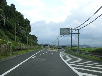 | 隼人小浜交差点から程なくして錦江湾沿いを走る。この辺りが錦江湾の最奥部である。R10/E78東九州道の清水川橋をくぐると海岸線から離れ、野久美田橋を渡って右カーブを曲がる。以前は狭い歩道が片側にしかない2車線道路だったが、拡幅されて走りやすくなっていた。 | ||