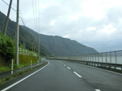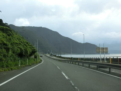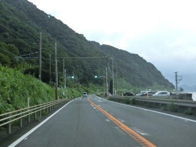 | 南向き車線との間の高低差がない箇所もあり、そこは普通の片側2車線道路である。海岸線沿いの狭い場所を通っているため沿線の集落は少なくあっても規模も小さいが、竜ヶ水集落には竜ヶ水駅が置かれている。 | ||