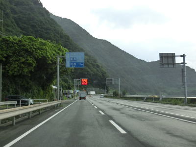 | 19.大鼻崎の手前は東方向を向く | 20.南向き車線は低い位置にある | 21.姶良市に入る |