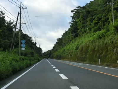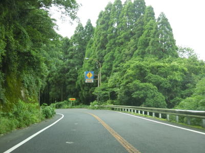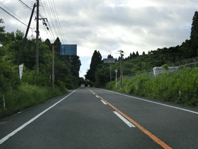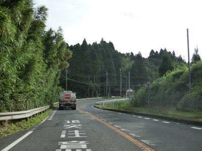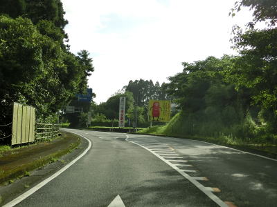 | 右カーブを曲がって緩やかな勾配を下っていると曽於市に入り、以降はカーブが多くなる。下り勾配の左カーブを曲がっていると再び霧島市に入る。曽於市域を通っているのは僅か1.6km程度だが、2ヶ所とも境標識が設置されている。 | ||