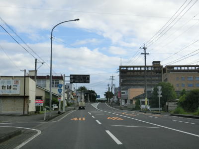 | 五十町ICからは緩やかなカーブを緩やかなアップダウンを繰り返しながら都城市の中心部に向かって走り、中心部の手前の天長寺橋の東詰でR269大岩田交差点を通過する。案内標識におにぎりは表記されていないが、この交差点から先はR269が重複している。 | ||