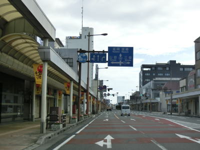 | 広口交差点の直後から再び4車線道路になり、アーケード街になった所でR222・R269中町交差点を通過する。この交差点はR222の終点のためR269とは異なり重複はしない。中町交差点を過ぎてすぐに宮崎r45交差点を通過して都城市の中心部を4車線道路で走り抜ける。 | ||