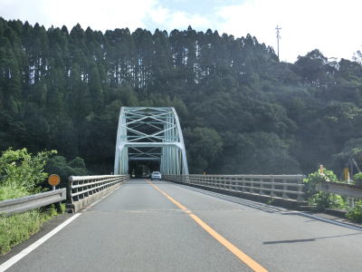 | 山下橋を渡って大淀川の左岸に移って山下トンネルをくぐり、トンネルを出ると唐崎橋を渡って右岸に戻り、唐崎集落を通り抜けると唐崎トンネルをくぐる。さらに面早流橋と仁反尾橋を渡ってからは右岸を走る。短距離で多くの橋を渡る事からも分かる通り、大淀川がかなり蛇行している。 | ||