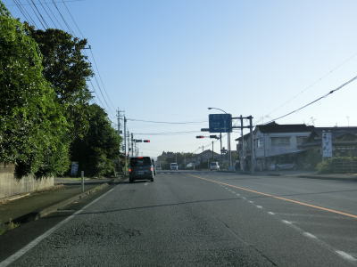 | 川南交差点を過ぎて少し走ると緩やかな下り勾配が始まり、下り切る手前で旧道と思われる町道との交差点を通過する。川南町役場の西側を通り過ぎて上り勾配が始まる辺りで産直おすず村という物産店の前を通過するが、なぜかそこにだけ中央分離帯が設置されている。対面2車線道路に戻って緩やかな勾配を上っていると宮崎r307中里交差点を通過する。 | ||