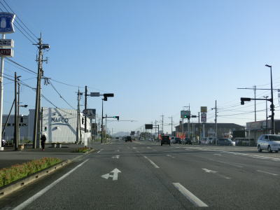 | 164.R219分岐後も沿線の商業施設は多い | 165.宮崎r346日向住吉駅入口交差点 | 166.交通量は多くない |