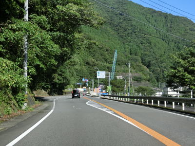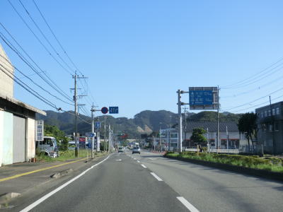 | JR日豊本線に沿って片側2車線道路を走っていると宮崎r15仙ヶ崎交差点を通過する。門川町に入った辺りで線路から少し離れ、宮崎r226南町南交差点を通過する。緩やかな左カーブを曲がって五十鈴大橋を渡り、上り勾配の右カーブの先でR388中須交差点を通過する。案内標識には表記されていないが、ここから北はR388が重複している。 | ||
